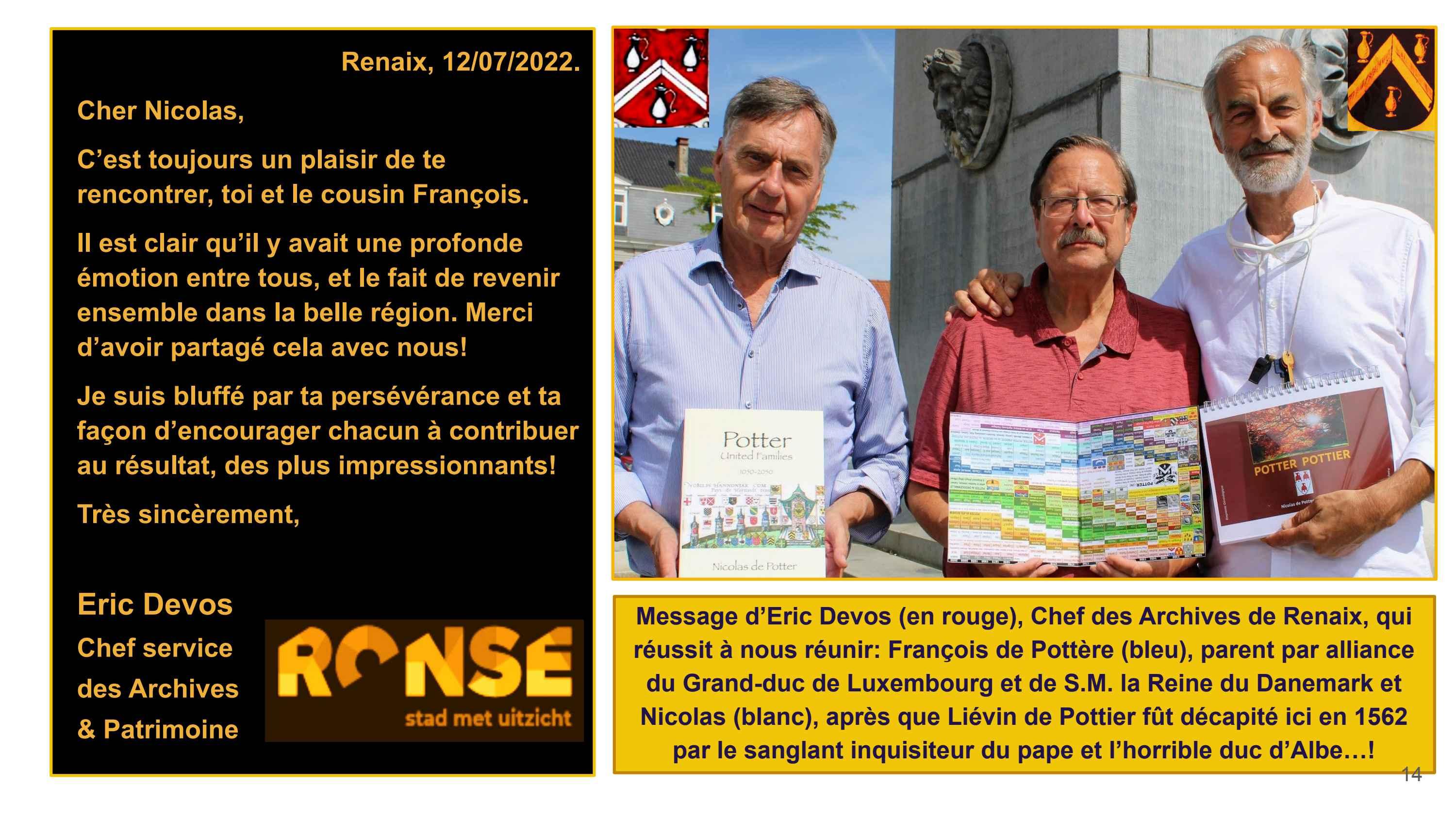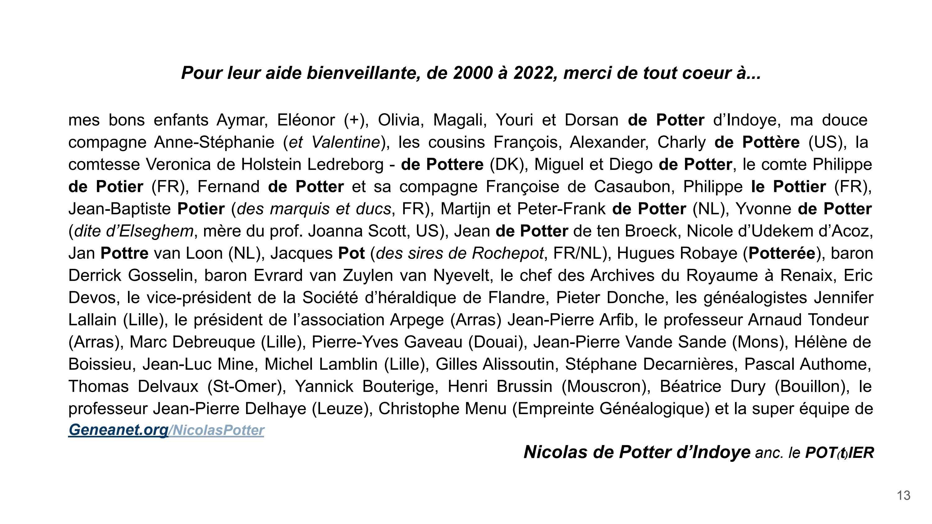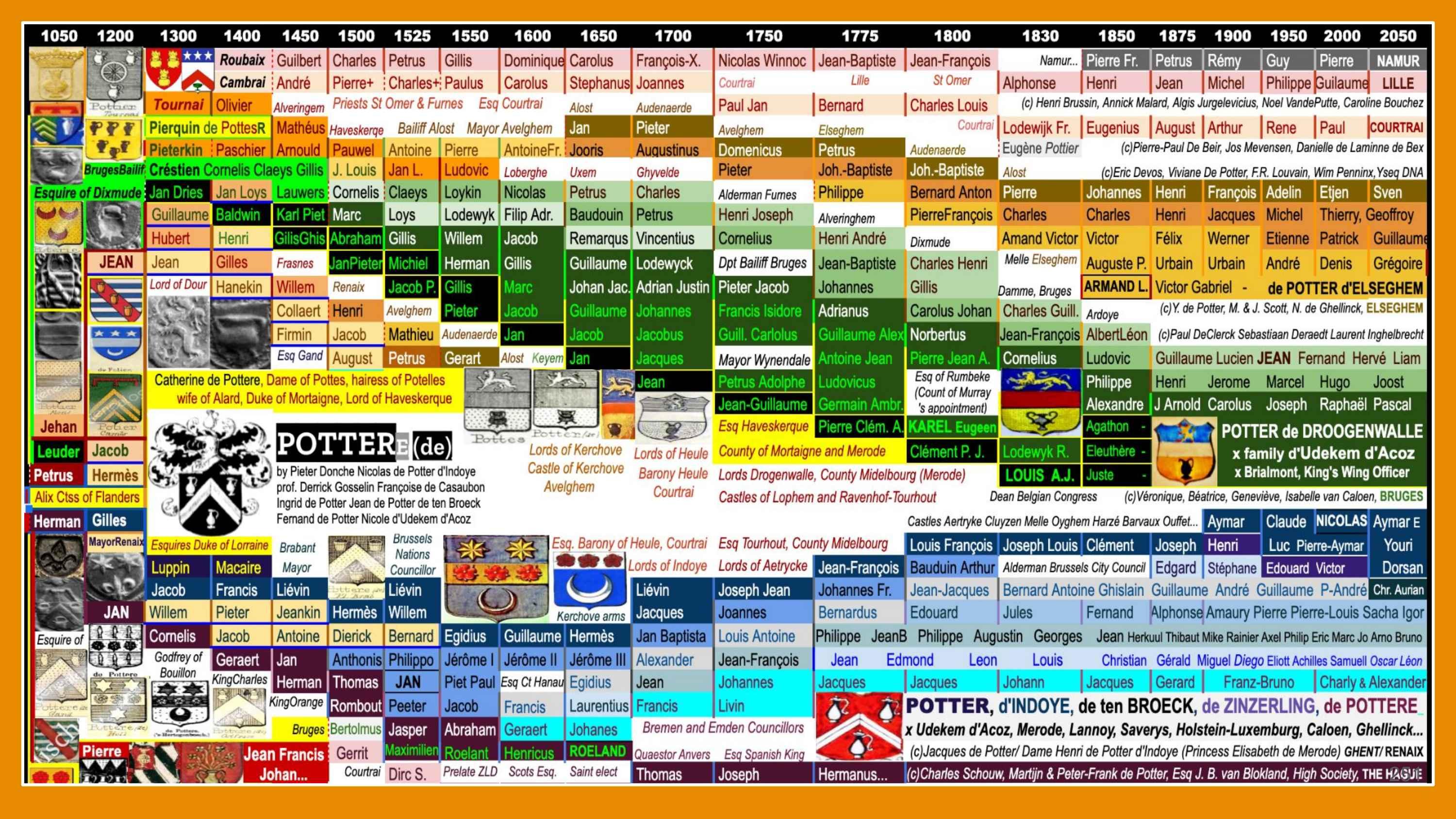 Ecuyer du Duc de Boulogne, secrétaire du Duc de Bourgogne, maire décapité par le Duc d’Albe, chef de la Zélande, trésorier du Roi d’Espagne à Anvers, échevin à Bruxelles, conseil du Roi de France à Tournai… Qui étaient nos ancêtres? Avant d’échoir nobles drapiers, ils étoient preux paysans, potiers insoumis, artisans rebelles, bateliers frondeurs, clandestins intrépides… Voici leurs aventures enchantées, au coeur de la forêt familiale généalogique. Mais qu’est-ce que c’est ce bîîîns !? Co-auteur de 6 kids et 6 books, Nic Potter, au taquet, a hackér l’ADN de Harry et kiffe ce bins déjanté, aux frontières du réel. Du coup, il écrase les larmes de croco du Moyen- ge, ça déchire grave. Mais pas que ! Il arrache le secret du curé, décoiffe la perruque du notaire… Ô elfe-licorne, chère fée-visiteuse de l’histoire, ce top eBook est trop stylé, tarpin iconic, pierre philosophale, grimoire quadri-comique, enluminé de peintures, reliques, sceaux, blasons, écus et miroirs magiques de Bellegique…