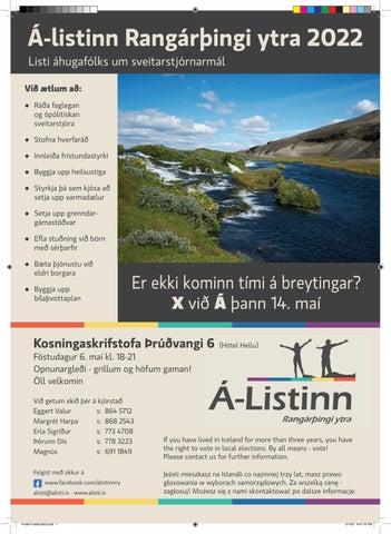 Útgefandi: Á-listinn Rangárþingi ytra Umbrot og prentun: Svartlist