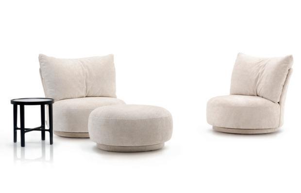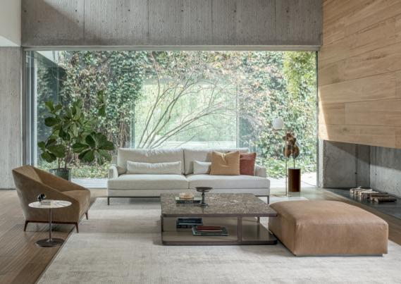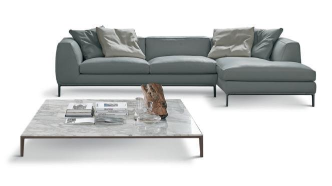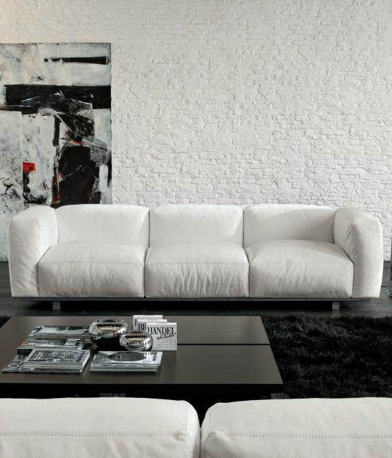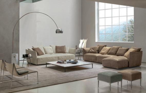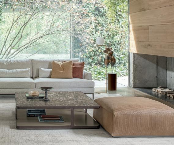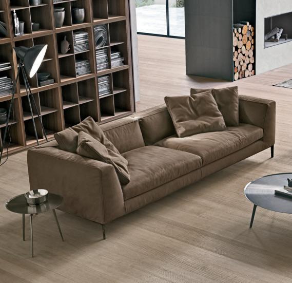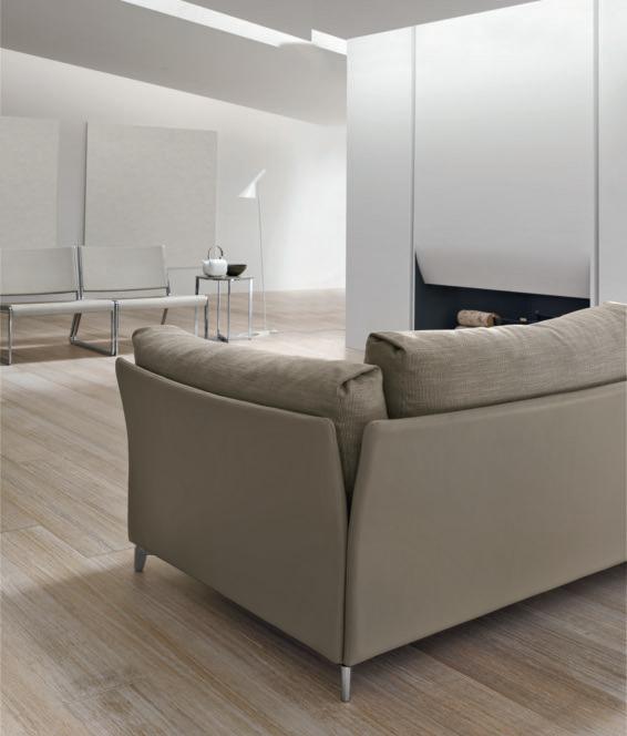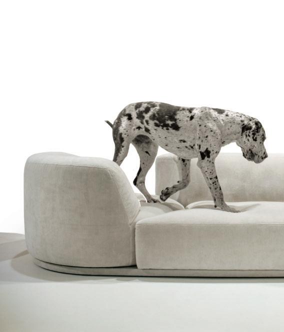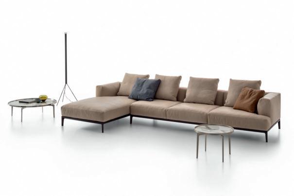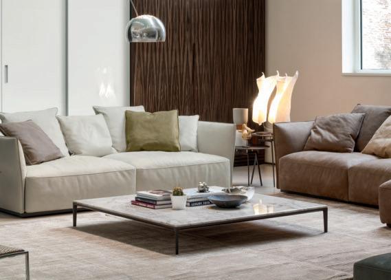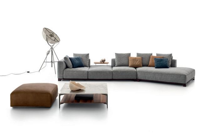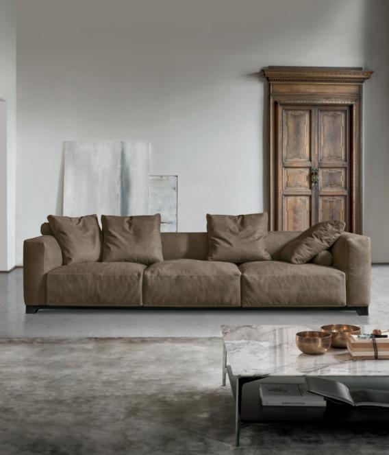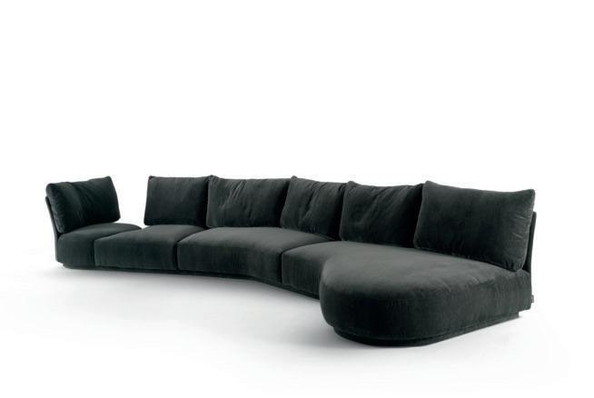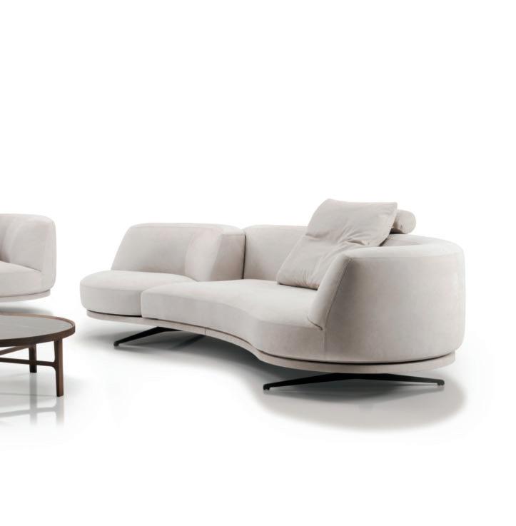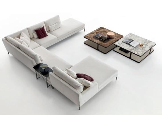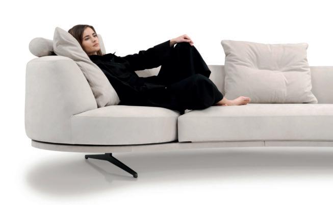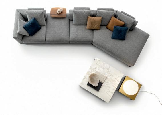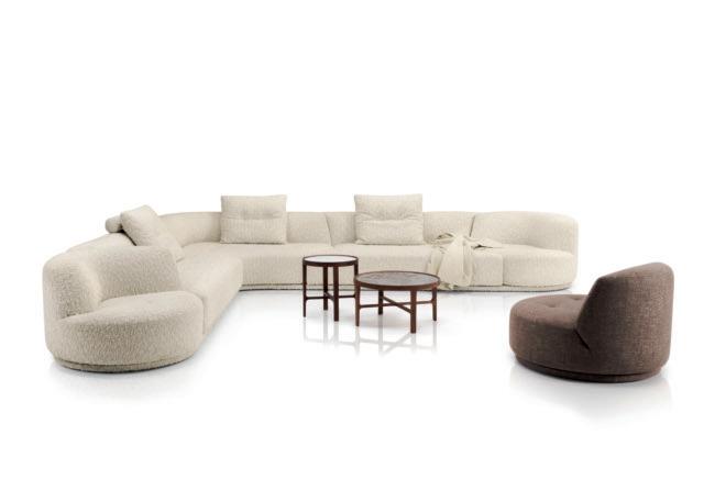 Sistema componibile di divani che interpreta un lusso contemporaneo dall’appeal morbido e informale. Con la funzionalità unica del terminale girevole.