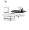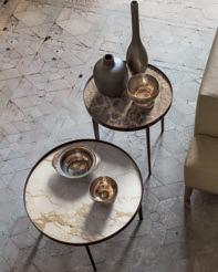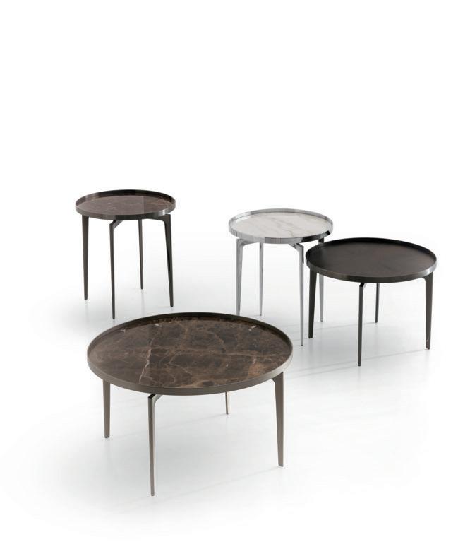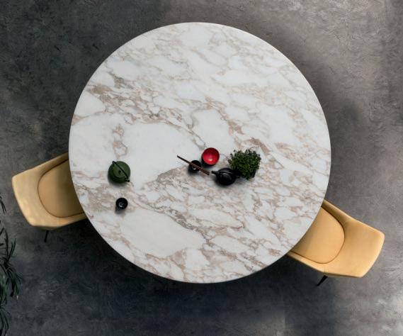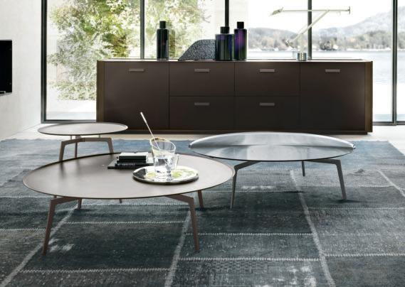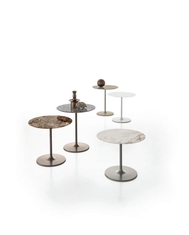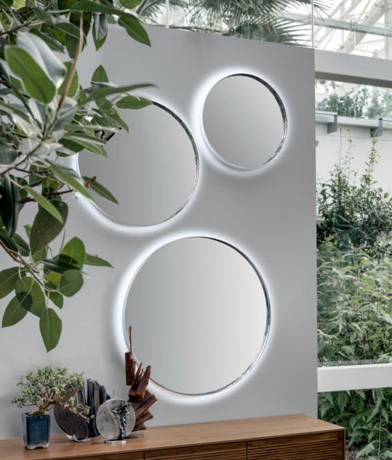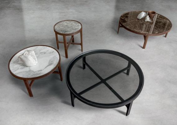 Una collezione che condivide la stessa forma circolare, ma che sanno distinguersi all’interno dello spazio per finiture e volumi.