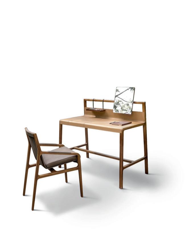 The writing surface and hide-clad details express timeless sartorial care and introduce Italian authenticity to the world.