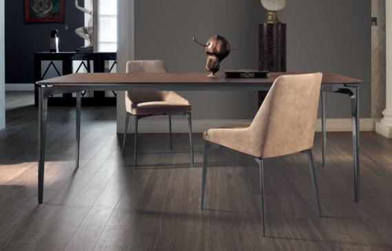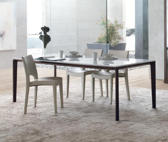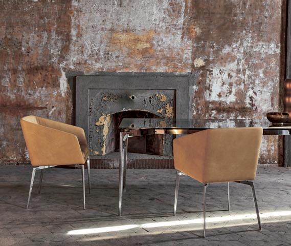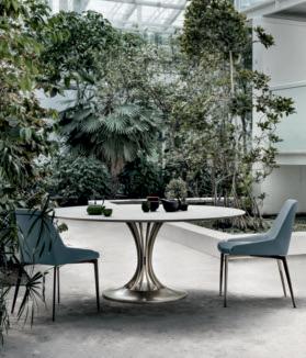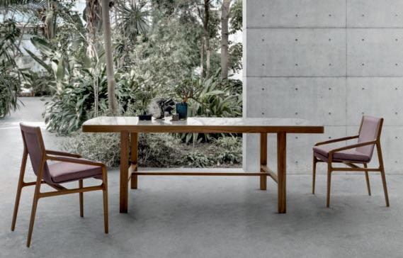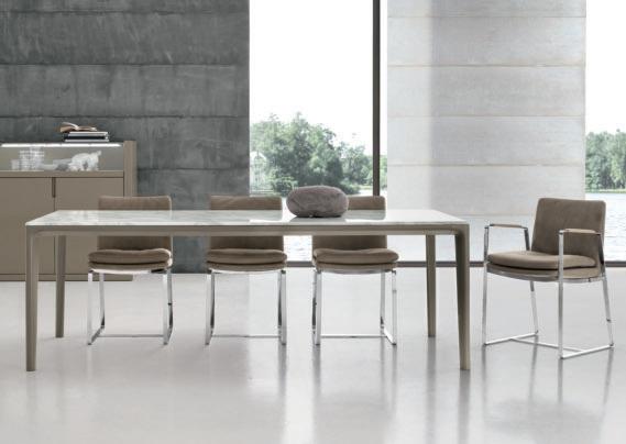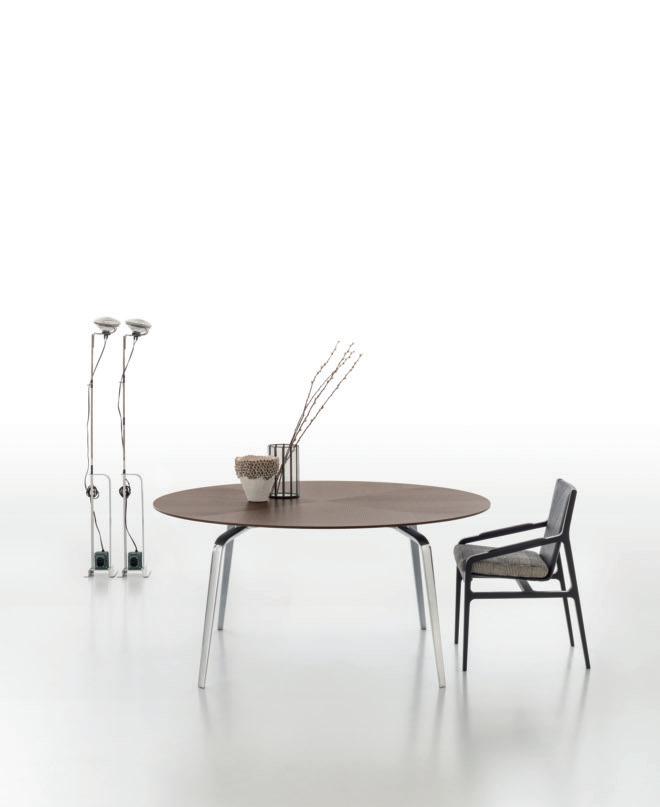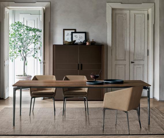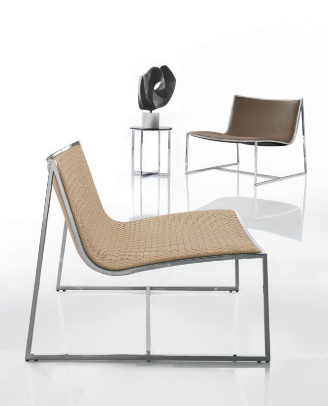 Its elegance is highlighted by the shape of the handles guaranteeing aesthetic continuity, and by the slender painted or polished cast aluminium legs.