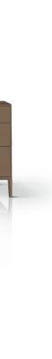 Comodino. Struttura cassetto in MDF curvato a vapore impiallacciata in rovere termotrattato, rovere nero o rivestita in cuoio con cucitura decorativa. Piano inferiore rivestito in cuoio. Cassetto con guide metalliche frenanti. Maniglia in metallo. Gambe e vassoio in acciaio verniciato peltrox, bronzo, titanio o champagne. Disponibile nella versione con 3 cassetti (art.SRO3) con vassoio in acciaio verniciato peltrox. bronzo, titanio o champagne.