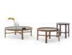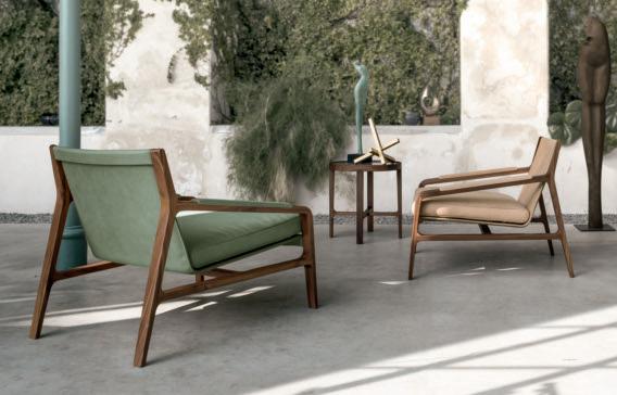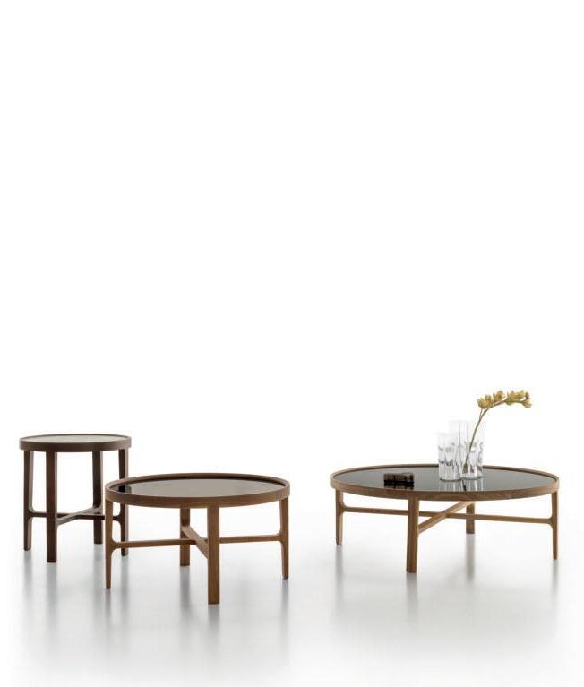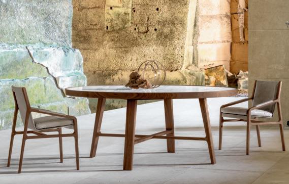 A collection that share the same circular shape, but that know how to stand alone in the space due to their fine finishes and volumes. Full or empty, wooden or hide-clad, each expresses perfection in its own way yet seeks harmony with the furniture around it.