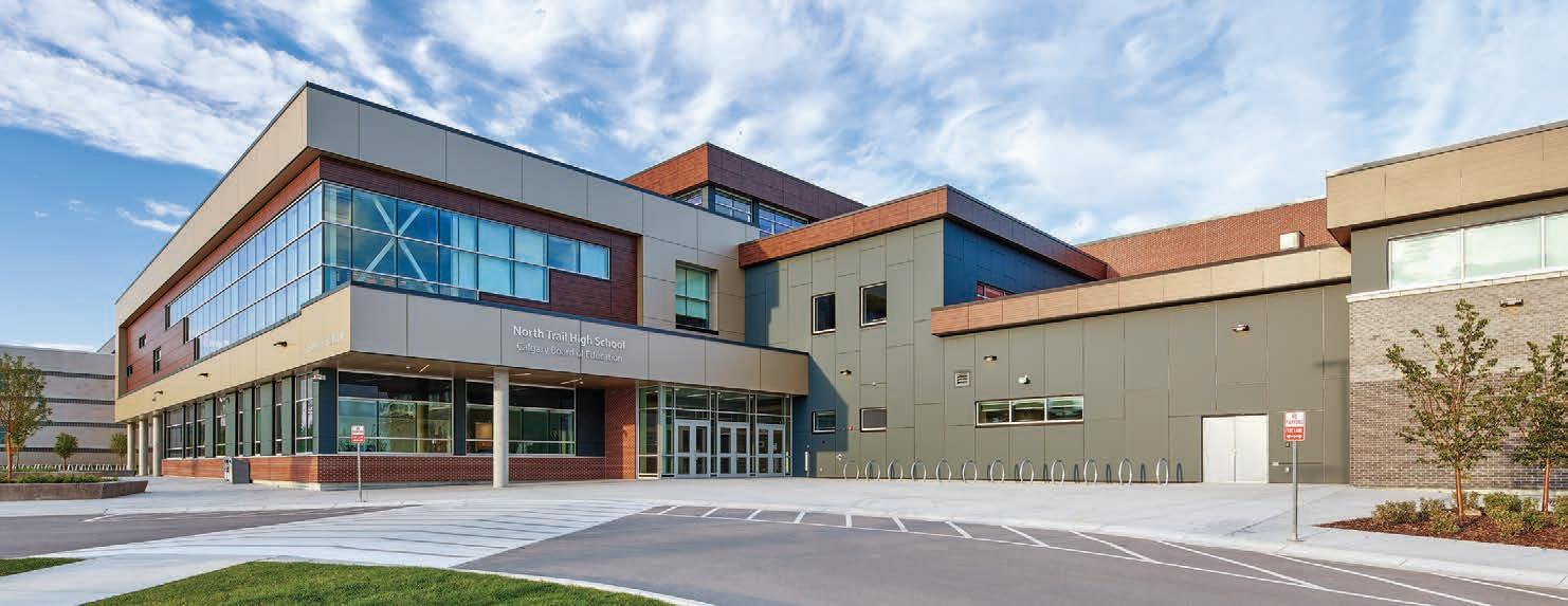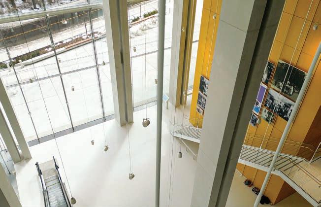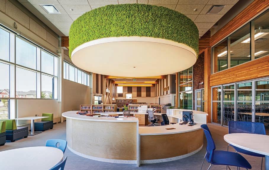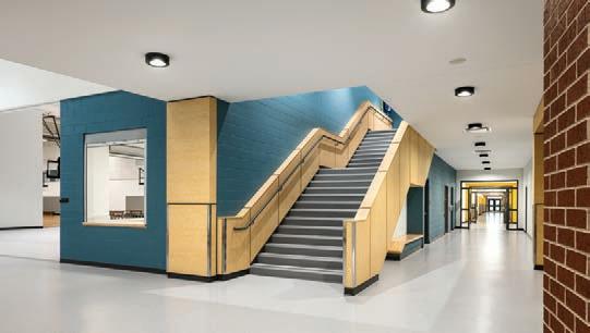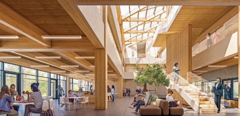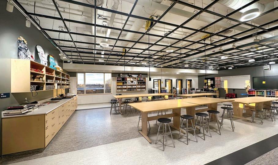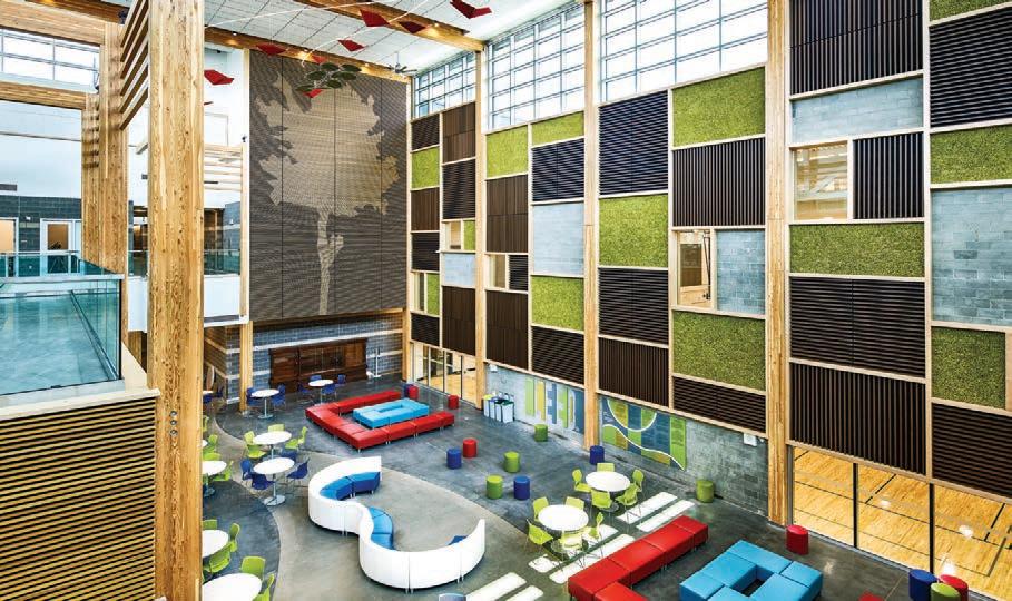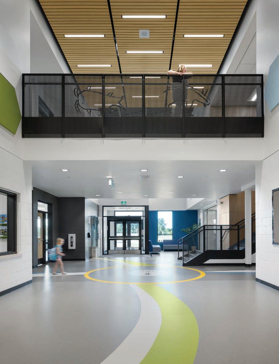 community, and the main entrance opens up to a south-facing cafeteria with views of the nature trails beyond. Importantly, the new design finally pulls all the classrooms into one building. “Having everybody under one roof? We’ve never experienced that,” says Michano. “Some of the teachers are laughing, realizing we’ll have an intercom for the first time.”
