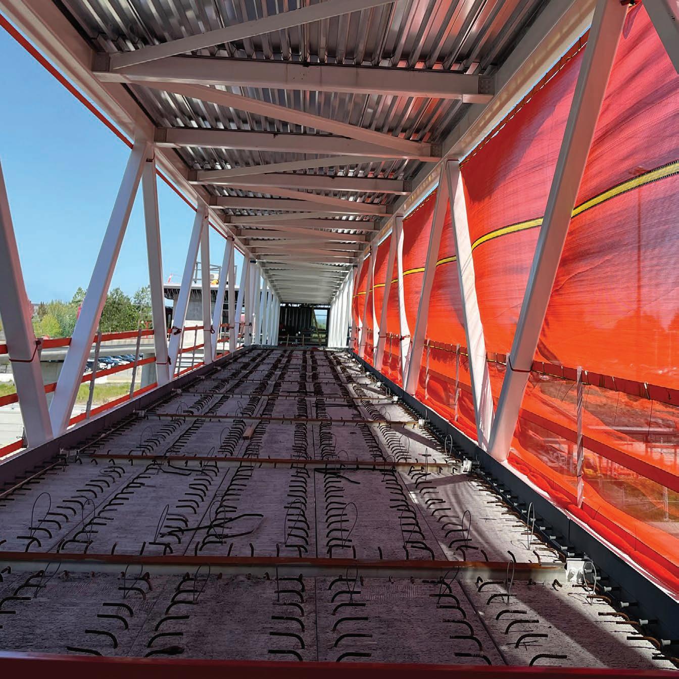 A key feature of the one-storey conventional steel building with a mezzanine to house the mechanical systems and control tower is the foundation – a massive concrete footing and slab set on eight-inches of rigid insulation placed above a thermosyphon system. “The principal function of the thermosyphon is to maintain frozen ground below the insulation layer,” says Tim Van Bewer, project manager for NDL Construction, Ltd. “This frozen state provides a very stable and reliable base for the entire building at a very low maintenance and operating cost for the full life cycle.”