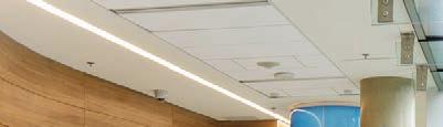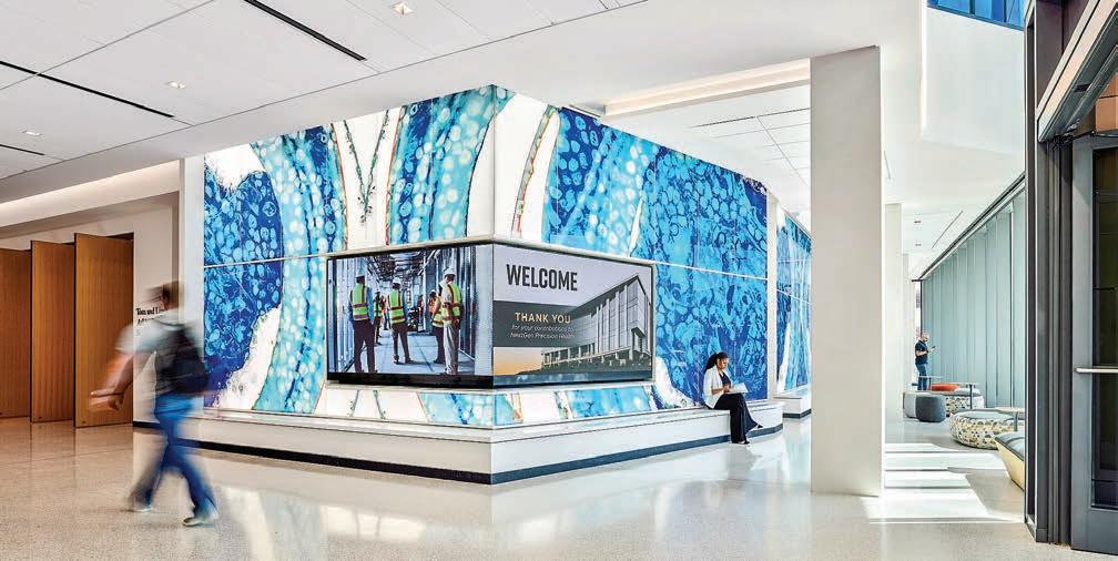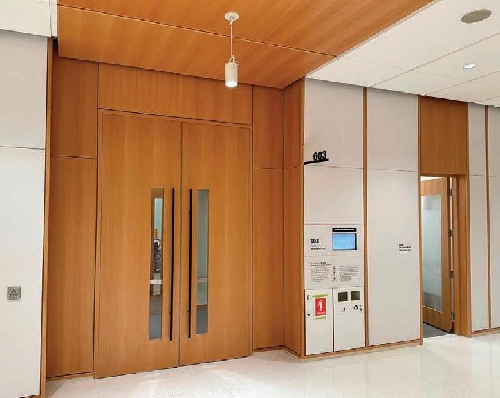 Inside, selected materials with wood-like patterns maintain infection prevention control while offering a high level of maintenance, resilience, and cleanability. The design thoughtfully provides views to the outdoors and interior courtyards, using residentiallooking light fixtures where possible and distributing spaces to encourage socializing within the RHAs. This thoughtful approach ensures that the residents’ experience is both comfortable and aesthetically pleasing.