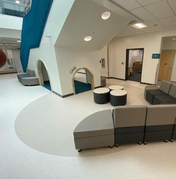 textiles and the hanging light installations – all elements that Sharp explains work together to help create the feeling of a new, progressive, interconnected, and fully transformed library experience.