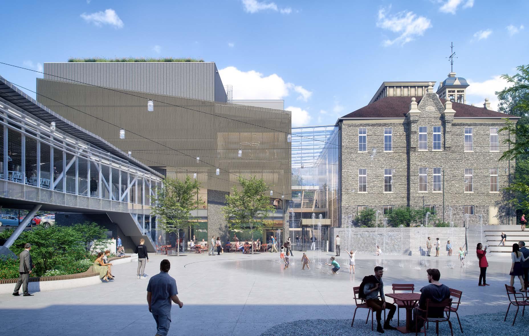 School; the expansion of a museum and cultural centre linked to the school; the creation of an enclosed pedestrian bridge; and the development of an outdoor public square enriched with diverse amenities.