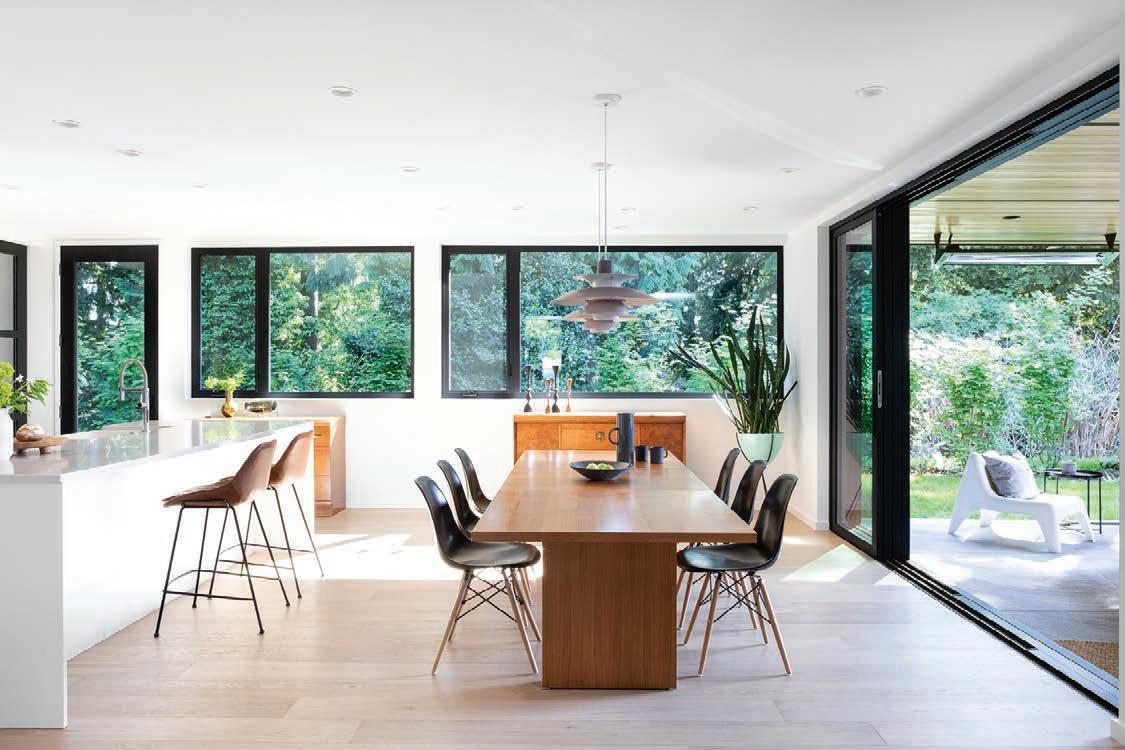 director of Cascadia Windows & Doors, reports seeing fewer accordion-style doors lately, likely due to the complex hardware this design requires. “The lift and slide has the benefit of simpler hardware but also larger panel sizes,” says Bousfield.