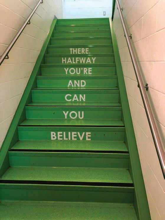“The Cave” is a unique space that offers inspiration and magic for students, evoking casual conversations around a fire pit. Located under the stair, this space features a light display, depicting the Big Dipper and Little Dipper engraved into the concrete. Trips down to the first floor are enriched by the “twirly slide,” which is not only a playful invitation for students, but also a way of engaging their sense of balance.
