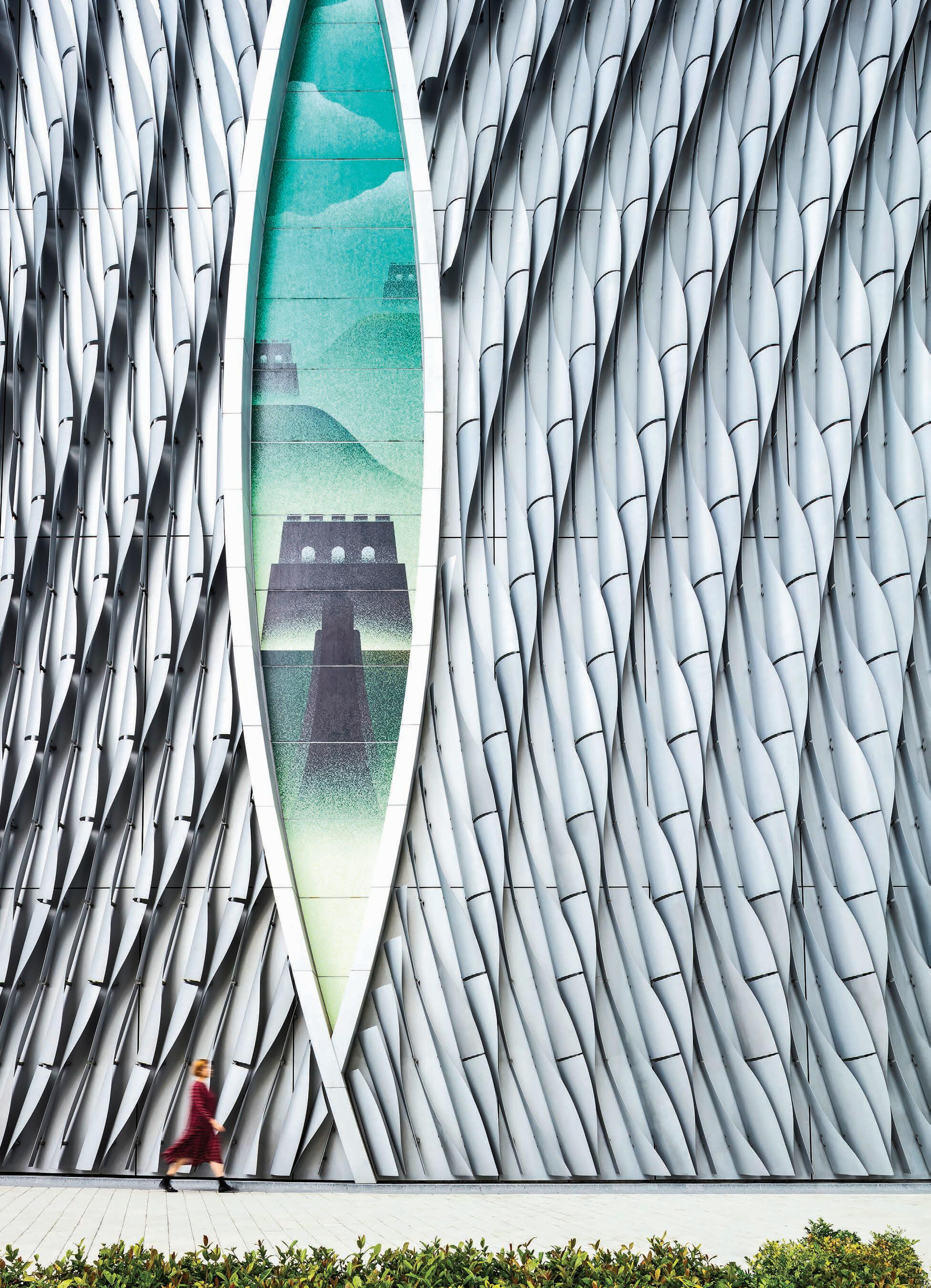 A notable visual highlight awaiting visitors is the bronze anodized expanded metal veil enveloping the Cultural Centre, providing a contemporary aesthetic that seamlessly complements the brick facade.