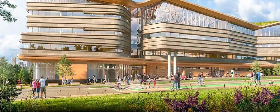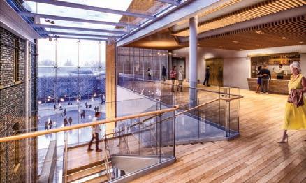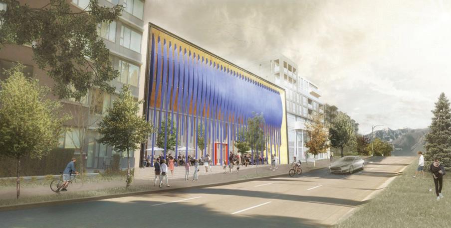 space year-round with an amphitheatre for outdoor performances. Water features in summer that convert to a skating loop in winter will provide year-round activation.