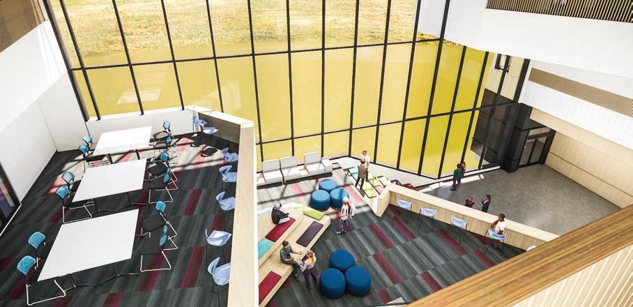 and the academic campus to the east. To the north, the project steps down in the form of the four-storey, low-rise building in response to the current streetscape along University Drive,” explains Meeta Lele, architect and project manager at Dialog.