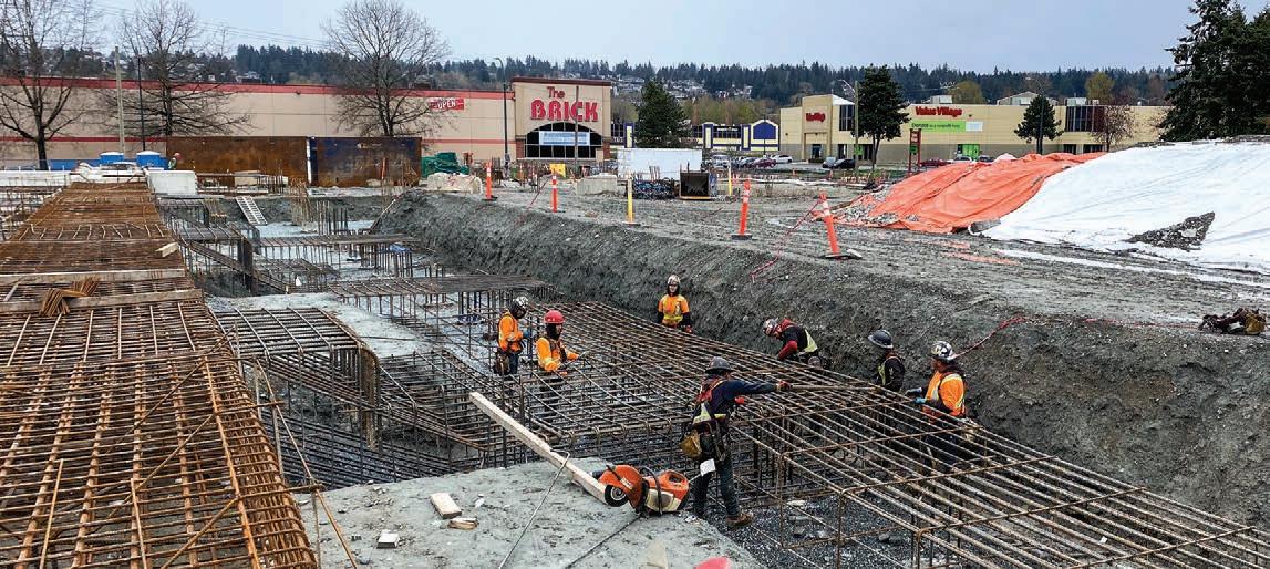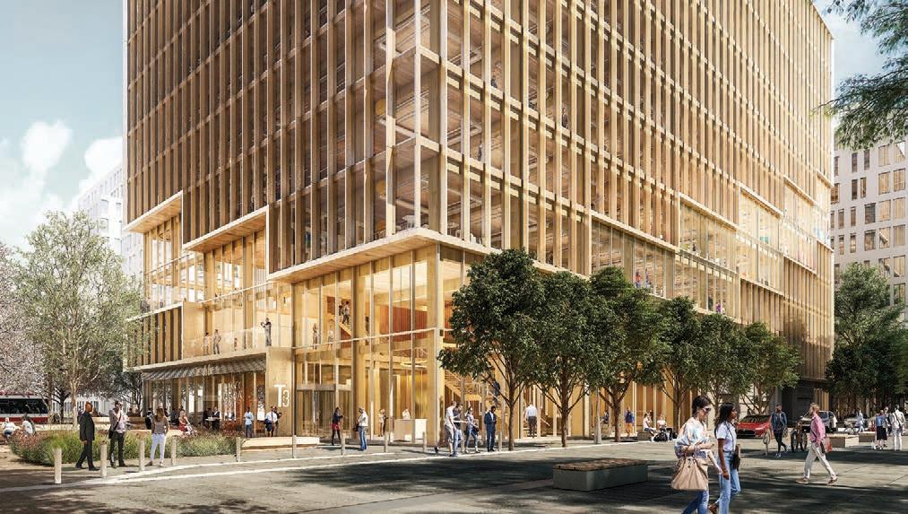 Eastern Construction’s extensive portfolio of steel and concrete structures and their recent awardwinning mass timber projects made them the ideal contractor to bring T3 Bayside to life. The project broke ground in the spring of 2020, with the first year spent on caissons, shoring, and excavation.