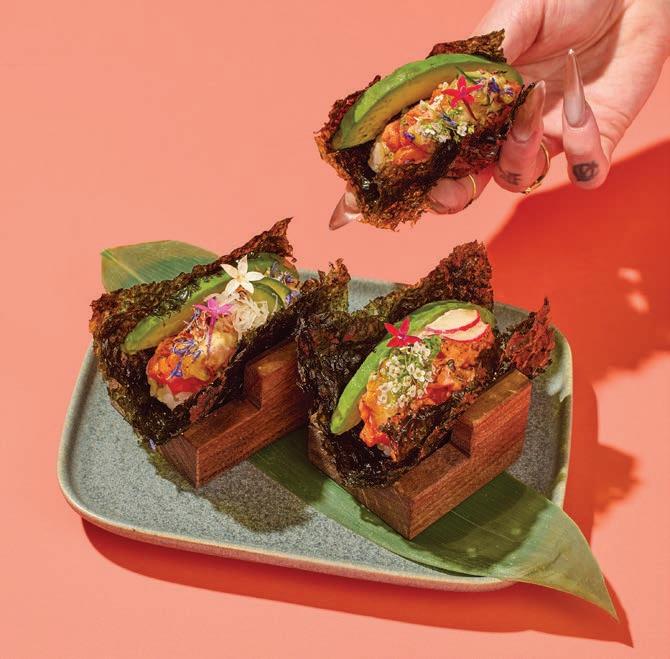 Our 25 Things to Eat feature includes these delectable aburi salmon nori tacos from the Pacific Rim’s Lobby Lounge. For more treats, savoury and sweet, turn to page 29.
