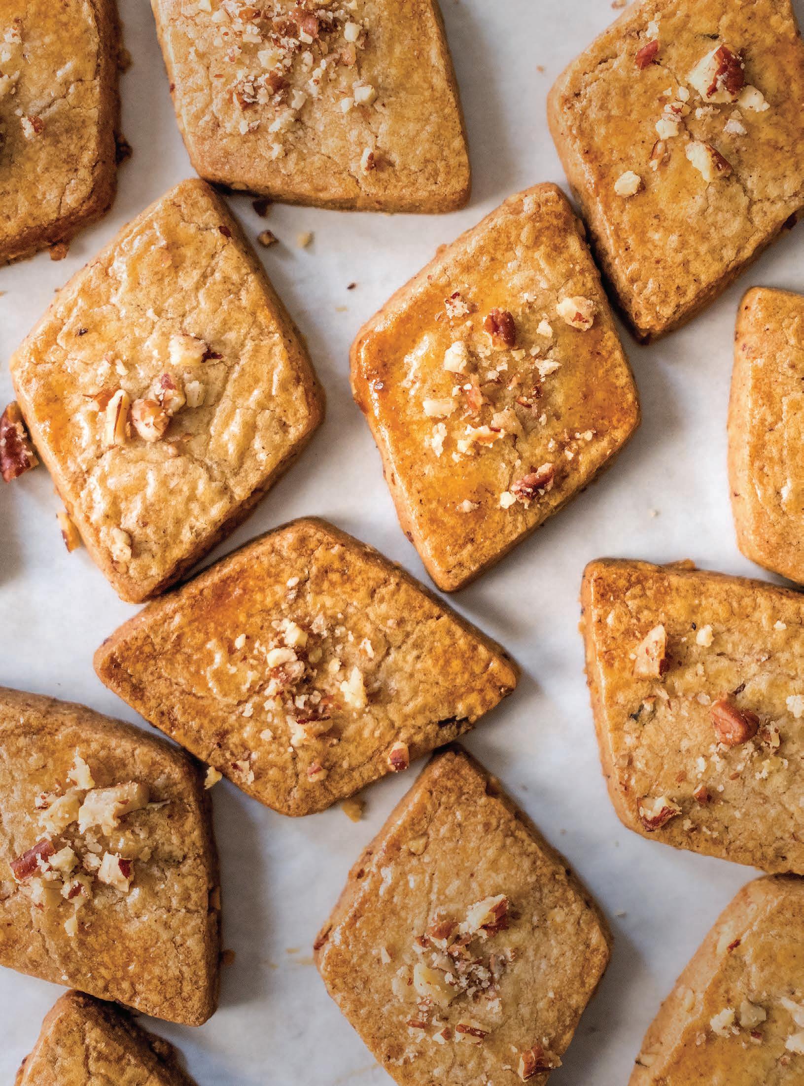 Who says sables are just for the holidays? These sweet, diamond-shaped treats sparkle any time of year, in our humble opinion, especially when given a twist by ever-talented pastry chef Betty Hung, co-owner of Beaucoup Bakery. Here, pecans replace typical almonds, but get nutty in your own way by subbing in walnuts or hazelnuts if you prefer.