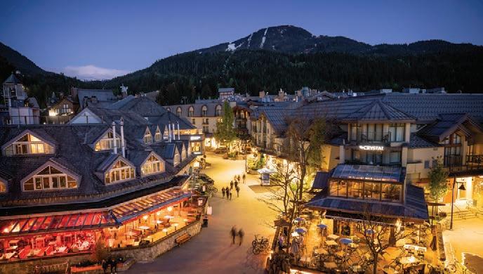 Party central awaits at the foot of the mountain. This is the intersection of athlete and patio, where nightlife begins after lunch and college kids can be found dancing on tables in coordinating theme outfits (in this case, the theme appears to be denim). I’m not particularly in the mood to hop up there with them (is it the poutine or my knees? A lady never tells) so instead I stroll the Village promenade, popping into Ruby Tuesday (26a–4314 Main St., rubytuesdayaccessories .com) to peruse some glittery things—I’ve been flirting with the idea of an anklet for a while—and then Helly Hansen and The North Face (4295 Blackcomb Wy., hellyhansen.com; 32–4314 Main St., thenorthface.com) to