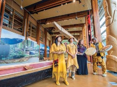 Next on my culture crawl is the Audain Art Museum (4350 Blackcomb Wy., audainartmuseum .com)—the building itself is an architectural work of art hidden within the B.C. landscape. Inside, I find equally compelling art pieces, starting with the red cedar wall (The Dance Screen [The Scream Too]) that greets me. There are nearly 200 works by B.C. artists in the permanent collection here (Tom Thomson, Emily Carr, Stan Douglas), along with a significant Northwest Coast First Nations mask collection and a