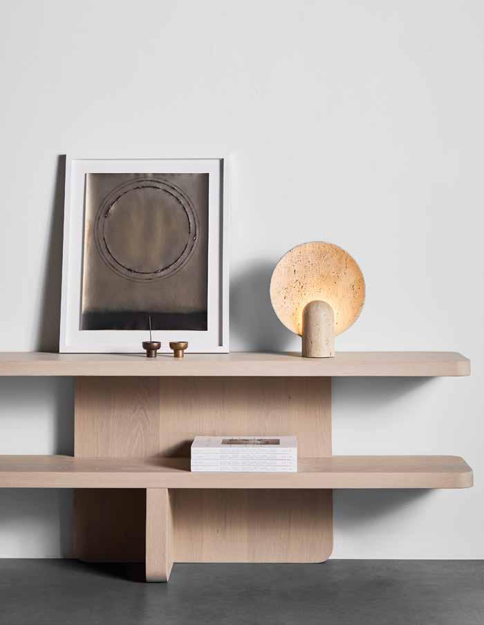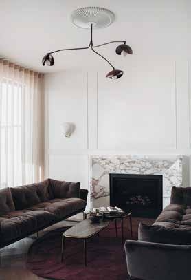 Lighting has always inspired me because, in addition to function, it can add so much tension and drama to a room—case in point, the “lasso” chan delier in our Bragg Creek project, made from a flexible silicone LED tube. With my background in creative advertis ing and lifelong passion for artistry, I see lighting as one of the most crucial elements in interior design—the jewel lery to a space. This fall, I’m launching a lighting line that is inspired by nature and crafted with a fluid and earthy design sensibility. Stay tuned to our website for the official launch!