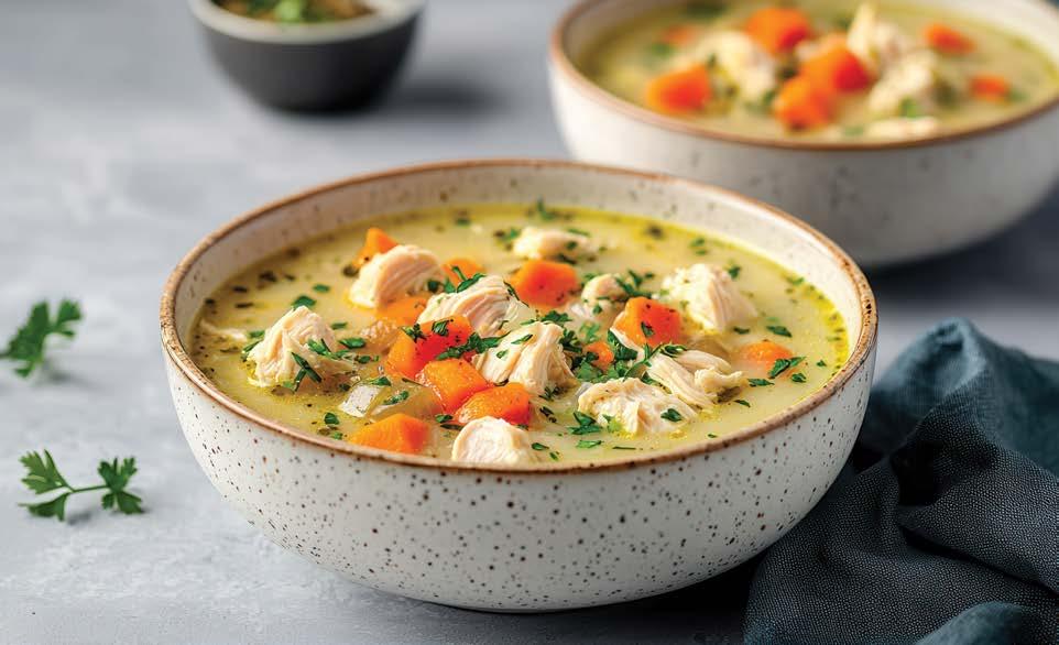 While it won’t cure your cold, chicken soup is warm, soothing, and hydrating. When packed with vegetables, garlic, ginger, and onion, it becomes a comforting and nutritious option that may support your immune system and ease symptoms.