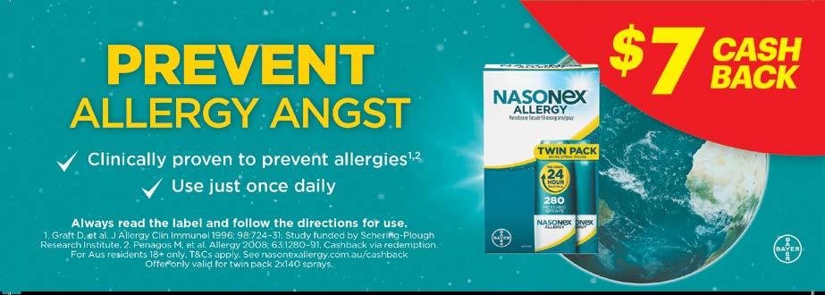 healthy, happy, alive Greatest Gift Always read the label and follow the directions for use. Incorrect use could be harmful. Consult your healthcare professional if symptoms persist. Vitamin supplements should not replace a balanced diet. *Ask your pharmacist about this product. Shop online • alivepharmacy.com.au Nurofen Meltlets Berry Burst 24 Meltlets Sambucol Double Strength 12 Pack Strepsils Herbal Immune Support Lozenges 16 Pack Sambucol Kids Pops 8 Pack Chemist Own Paracetamol Suspension 1Months to 2Years 20mL Little Dry Coughs 200mL $10 99 SAVE $3.00 ea $1799 Chemist Own Children’s Natural Cough Mixture 200mL $969 SAVE $3.30 $10ea99 HOT PRICE ea Chemist Own Children’s Pain & Fever 6Months to 12Years 200mL $969 SAVE $3.30 $12ea99 HOT PRICE ea Nurofen Baby 3 Months+ 50mL $1199 HOT PRICE ea $14 Nurofen 200mg 24 Caplets Nurofen Cold & Flu 24 Tablets Sambucol Immune Defence Effervescent 15 Tablets Soothers Herbal Honey + Lemon 20 Pack Allens Soothers Black Currant 10 Pack Strepsils Herbal Cough Lozenges 16 Pack Sudafed PE & Sprays Range Dymista Allergy Nasal Spray 120 Doses Codral Range Nasonex Allergy 24Hr Nasal Spray Twin Pack 2 X 140 Sprays $699 HOT PRICE ea $699 HOT PRICE ea $699 HOT PRICE ea $199 HOT PRICE ea $449 SAVE $1.01 ea $1599 SAVE $4.00 ea $949 SAVE $2.46 ea $799 HOT PRICE ea $1299 HOT PRICE ea $599 HOT PRICE ea $499 HOT PRICE ea $3499 HOT PRICE ea $1299 HOT PRICE ea FROM $499 ea FROM $560 ea $3699 HOT PRICE ea FROM $899 ea Benadryl PE & Kids Range Zyrtec Adult Range