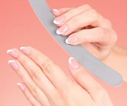 TO SHAPE: hold your hand in a high five position, nails facing towards you. Use light stokes with the file on each side of each nail. A round shape is the easiest to maintain. Shape them to a square initially and follow with the natural curve of your fingertip.