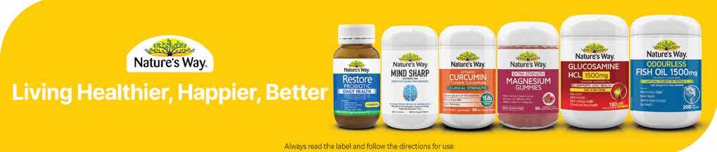 healthy, happy, alive Always read the label and follow the directions for use. Incorrect use could be harmful. Consult your healthcare professional if symptoms persist. Vitamin supplements should not replace a balanced diet. *Ask your pharmacist about this product. OH MAN! Shop online • alivepharmacy.com.au Dettol 2 in 1 Antibacterial Wipes 60 Pack Carefree Organics Tampons 16 Pack Dettol 2 in 1 Sanitizer Spray with Aloe Vera 90ml Tena Pads Maxi Night Extra Long Length 14 Pack Chemists’ Own Cold Sore Relief Cream 5g Tena Pants Plus Night Large 12 Pack Band-Aid Tough Strips Waterproof 20 Pack Band-Aid Tough Strips 20 Pack Band-Aid Tough Strips Extra Large 10 Pack $369 HOT PRICE ea $669 SAVE $2.30 ea $549 HOT PRICE ea $349 HOT PRICE ea $369 HOT PRICE ea $399 SAVE $2.01 ea $1069 SAVE $0.96 ea $999 HOT PRICE ea $2169 HOT PRICE ea Aero Wound Care Dressings Range Opsite Post Op 9.5cm X 8.5cm 3 Pack Smith + Nephew CICA-CARE 3cm x 12cm Colgate Plax 1L $699 SAVE $5.00 ea Colgate Prorelief Toothpaste Multi, Enamel, White 110g Colgate Brush Gentle Care 2 Pack Soft $1199 SAVE $2.96 ea$699 Listerine 1L Range or Pocket Mists 140 Sprays Microshield 2 Chlorhexidine Skin Cleanser 500ml $699 SAVE $4.00 ea $1499 SAVE $2.00 ea $3699 SAVE $7.96 ea 20% OFF RRP UP TO $1699 SAVE $2.50 ea FROM $1099 ea $649 HOT PRICE ea