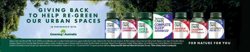 healthy, happy, alive OH MAN! Always read the label and follow the directions for use. Incorrect use could be harmful. Consult your healthcare professional if symptoms persist. Vitamin supplements should not replace a balanced diet. *Ask your pharmacist about this product. *Ask your pharmacist about this product. Short-term treatment of primary insomnia (insomnia without an underlying medical or any other clear cause) characterised by poor quality sleep, in adults aged 55 years or over. Not to be used concurrently with other treatments for insomnia. Shop online • alivepharmacy.com.au Blackmores Fish Oil Odourless 1000 400 Capsules Blackmores Macu-Vision Plus 60 Tablets $2199 SAVE $23.50 ea 40% OFF RRP Chemists’ Own Provance Vitamin C Gmo Free 120 Capsules Swisse Ultivite Men’s High Potency Multivitamin 40 Tablets Cenovis Sugarless C 500Mg 100 Chewable Tablets $4499 SAVE $9.96 ea Swisse Ultivite Men’s Multivitamin 60 Tablets Cenovis Echinacea, Garlic, Zinc & C 60 Tablets $769 SAVE $2.80 ea $1599 HOT PRICE ea $3499 SAVE $25.00 ea $2499 SAVE $8.96 ea $1869 SAVE $26.30 ea $3999 SAVE $12.01 $1499 SAVE $3.51 ea 40% OFF RRP Bioglan Top sellers Selected Lines Only Nature’s Own Range Nutra-Life Range Bioglan Medlab Mg Optima Relax 150g Nature’s Sunshine Berberine 90 Capsules Inner Health Advanced Spectrum Range $3299 SAVE $26.96 $2099 SAVE $15.96