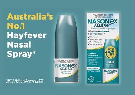 A steroid nasal spray: persistent to moderate to severe hay fever symptoms. Reduce swelling in the lining of your nose. For example Nasonex or Rhinocort.