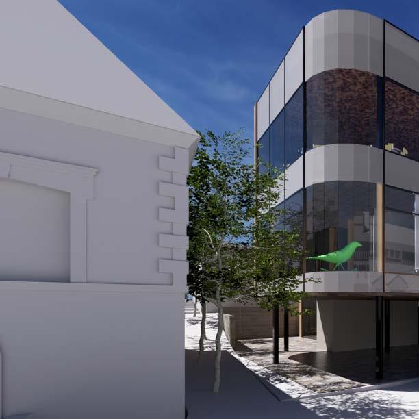 Prompt: This group project designed sustainable, affordable living units within a mixed-use site south of the Bishop Arts District in Dallas. Inspired by AI-generated imagery, the design integrates eco-friendly solutions to enhance community living.