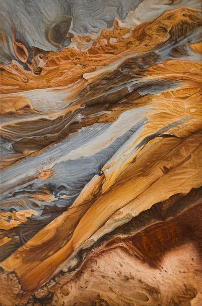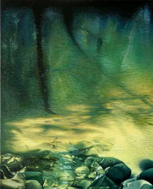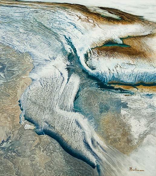 The recalling and the recapitulation of sacred places within sacred time which is captured in the artist’s lates paintings. Her work celebrates and heralds the imaginative patterns of the movements of natural forces. Her work, while its pantheistic aura might easily be traced back to the German Romantics’ deep empathy with nature and later to the Transcendentalist movement’s roots in American landscape painting, particularly the Hudson River School painters in the nineteenth century, harkens to a pre-Edenic sense of oneness with the environment. Bachmann’s images are evocations of the deep symbolism of life, disappearance and rebirth embedded within the cycles of nature.