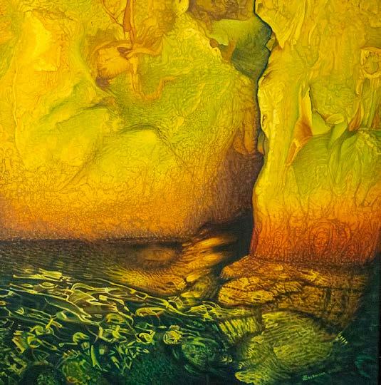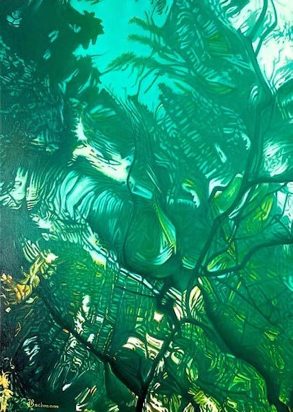 Jacqueline Bachmann’s mythic imagery that bespeaks of an animistic communion with the forces of nature will remind the viewer of Northop Frye’s famous paraphrasing of Mircea Eliade’s writings on myths. Frye notes that the central symbolism and the central conception of myths and rituals is that a renewal in time is normally thought of as a renewal of time