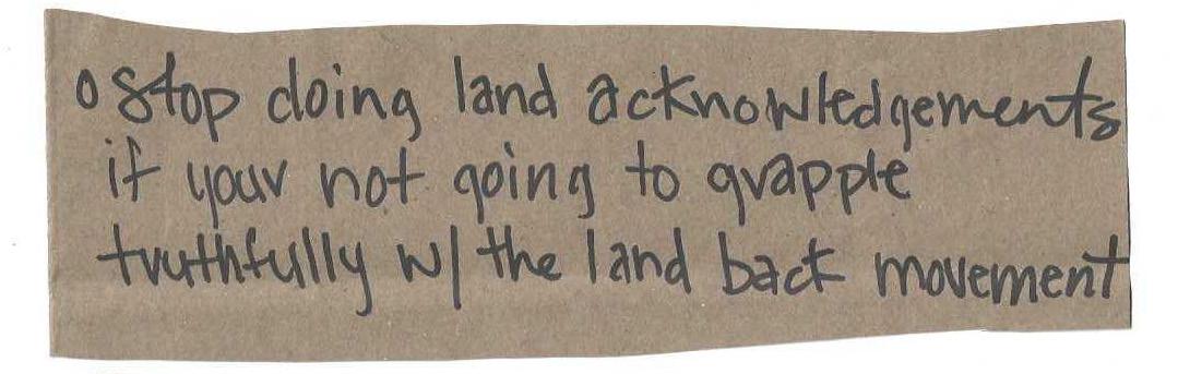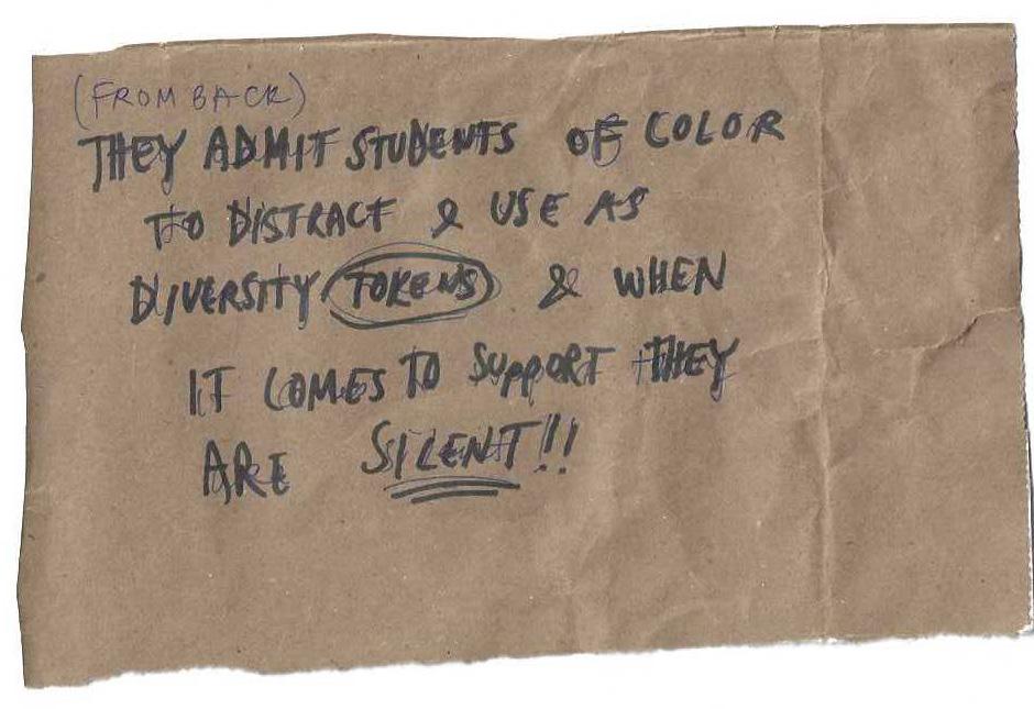 Mary: It’s a good question. I think we’re asking more questions at this point. And we don’t know how the booklet is going to be read, or what could happen from it. The more people who have it, I think the more potential there is for something to happen from it, There should be a space that is dedicated for people to leave information because the events that Pratt Institute plans don’t always have the same effect, maybe because they’re top-down. And we need a space that’s not [topdown].