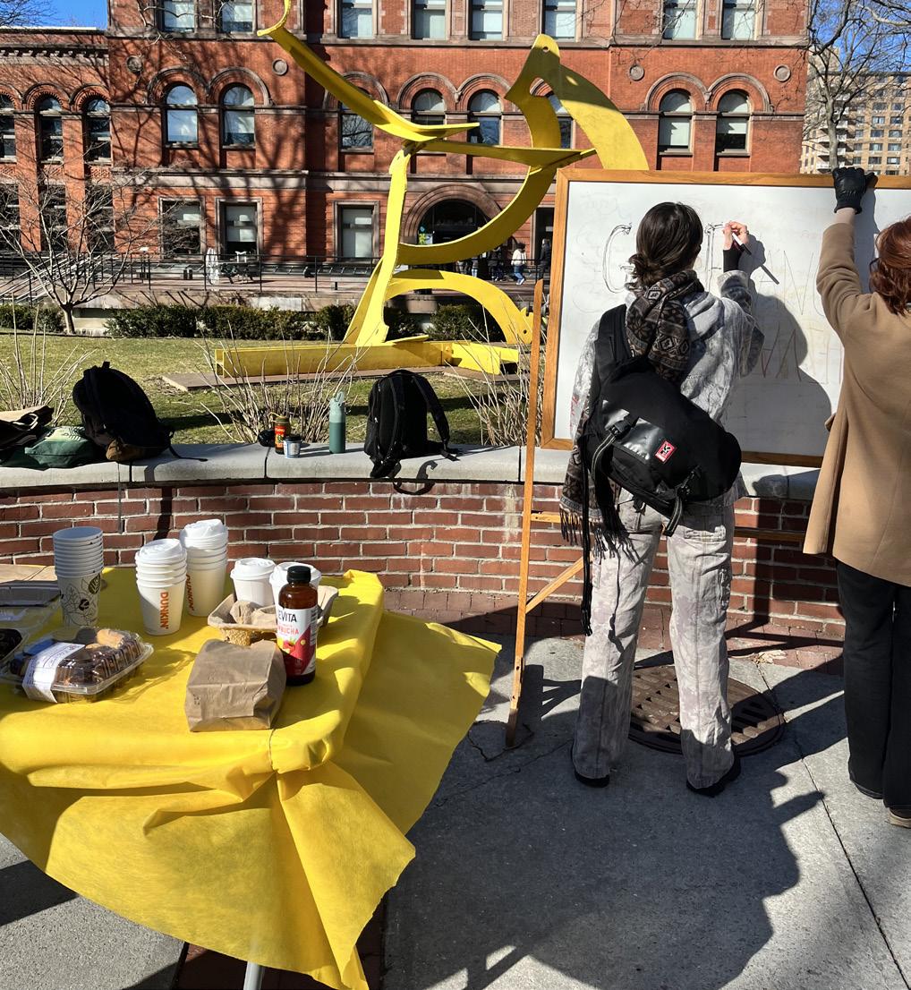 It was a really good way for people to have their voice. But I feel like a lot of the bulletin spaces we have are indoors and are very easy to walk by. You have to get permission for what you post. And there’s kind of an economy of space going on. It’s all very official, like having some kind of public forum for people to organize meetings or voice their thoughts could be great. Not that it wouldn’t be subject to any kind of, you know, regulation or something like that. But I wonder why we don’t have any kind of outdoor public space for students to interact with?