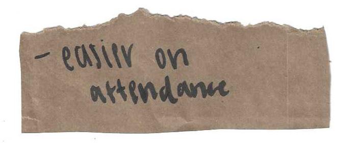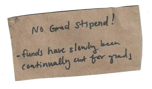 Aliza: It would be nice to have a permanent public forum, because something that I remember about my undergraduate campus was kind of nice was that there were a lot of public bulletin boards around campus where people could just post things, there weren’t that rules about what you could post, people would just stick up stuff.