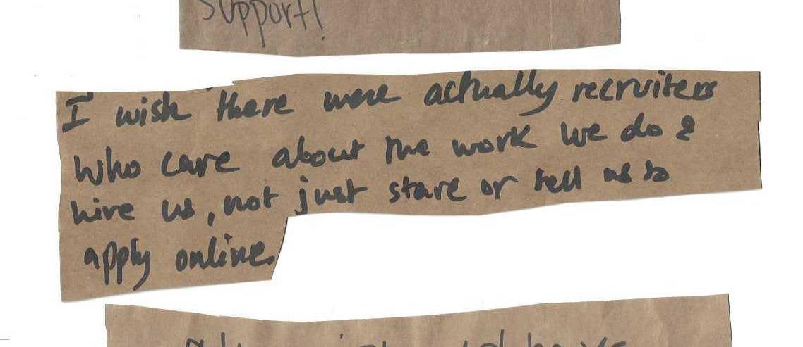 Suzanne: I think the first thing I experienced would be how people almost seemed excited to be talking about their grievances or things that they weren’t happy about. I felt like it was cathartic for them. I had conversations with people where they looked me in the eye and told me these things, but then I think it felt different for them to write it down on a piece of paper, and see it be placed the ground looking like a flower or hanging on the cannon. There was just something experiential for people. And I felt something too, in listening to them. So that was interesting for me.