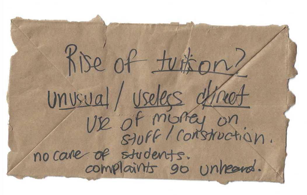 The purpose of the Grievances project was to provide a channel for the Pratt community to express their aspirations and frustrations, and relay their own personal experiences of Pratt Institute. This zine is not intended to make an argument about the objectivity of complaints, rather to acknowledge the importance of the subjective experiences of our community members. For the purposes of helping readers understand the context in which these complaints were made, we have compiled some information about Pratt Institute below.