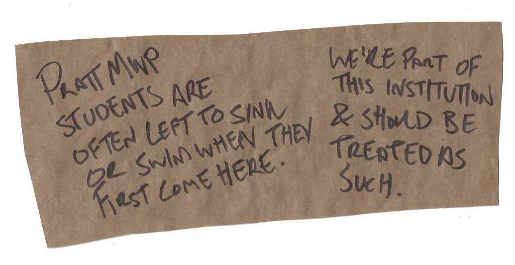 For those who want to continue sharing grievances, we have a more dynamic project online at our instagram @prattgrievances_