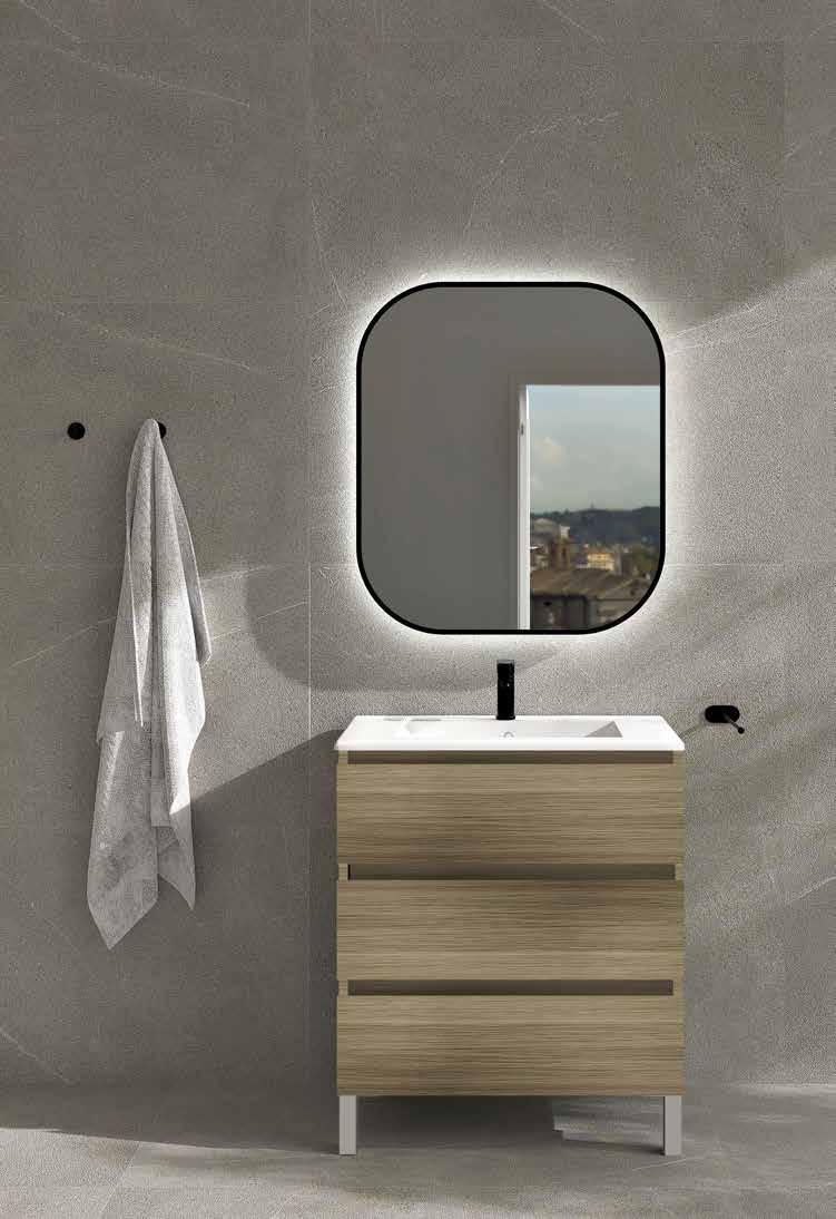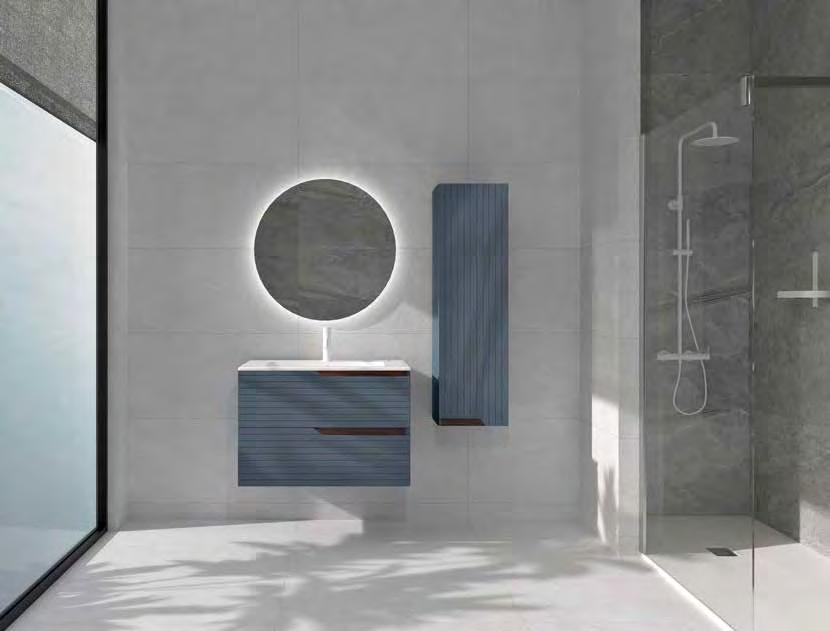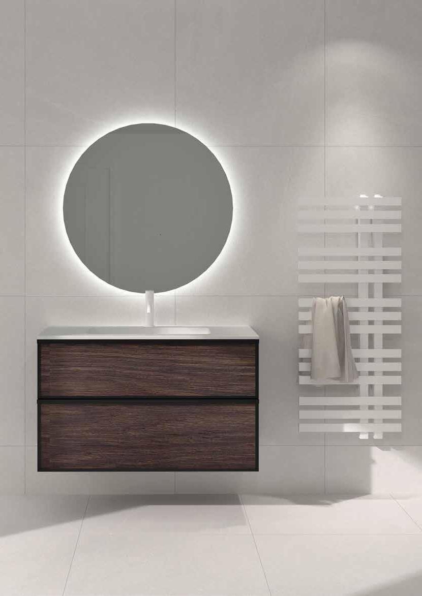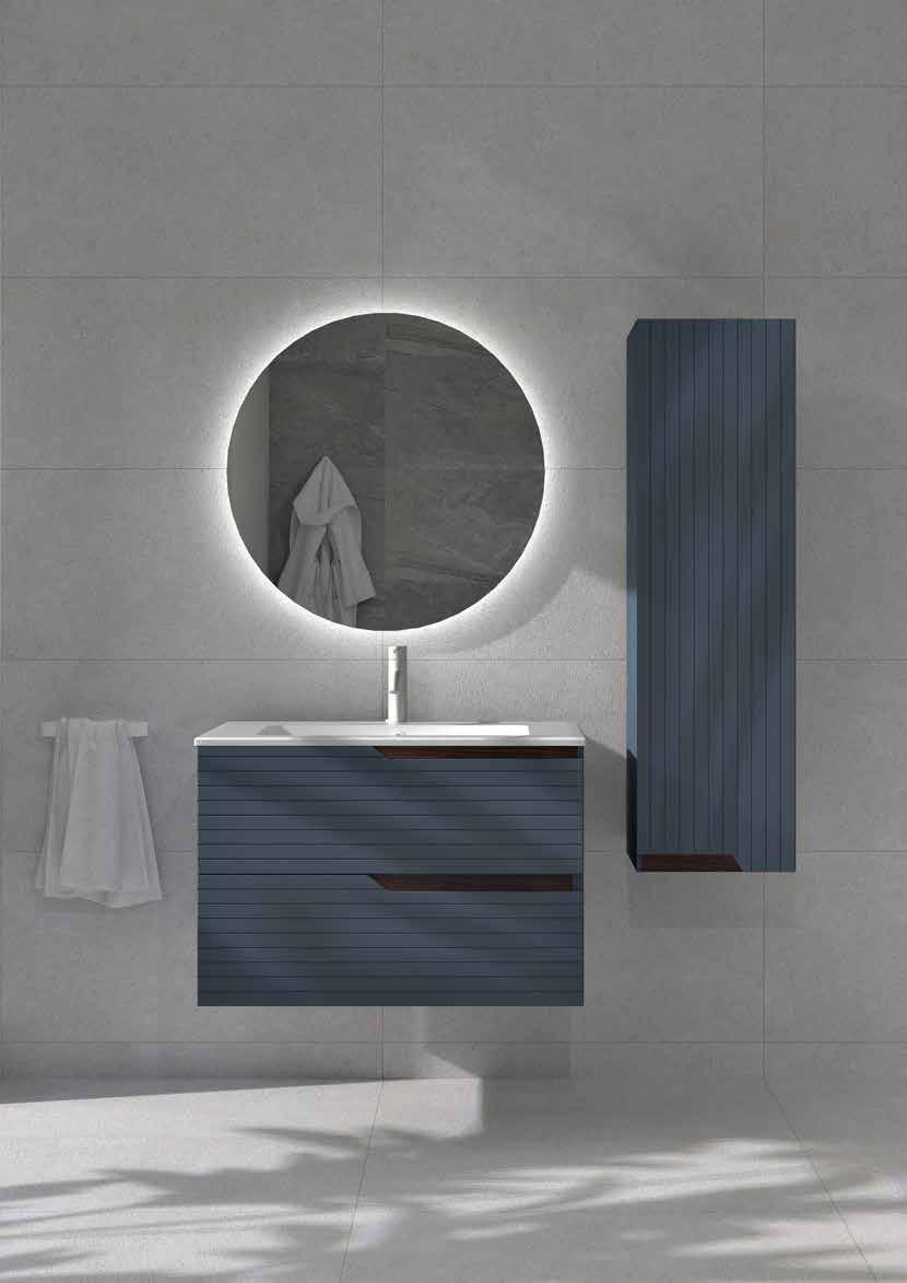 Combinación formada por un mueble DONNA de 80 cm en color mare. Lavabo blanco mate BIANCO V de 80 x 46 cm. Espejo retroiluminado MOONLIGHT de Ø 75 cm. sin IVA 825,45 €