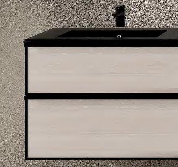 Combinación formada por un mueble DONNA de 100 cm en bianco mate. Lavabo negro de porcelana CÓDIGO II de 100 cm. Espejo con luz funcional ALTAIR de 100 x 70 cm. sin IVA 904,50 €