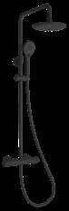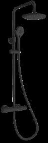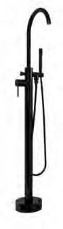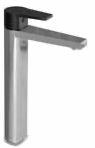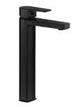 Medidas: 26,8 × 14,8 cm Al. 6,5 cm (Al. total 38,6 cm) Aluminio negro mate. Adaptable a cualquier grifería.