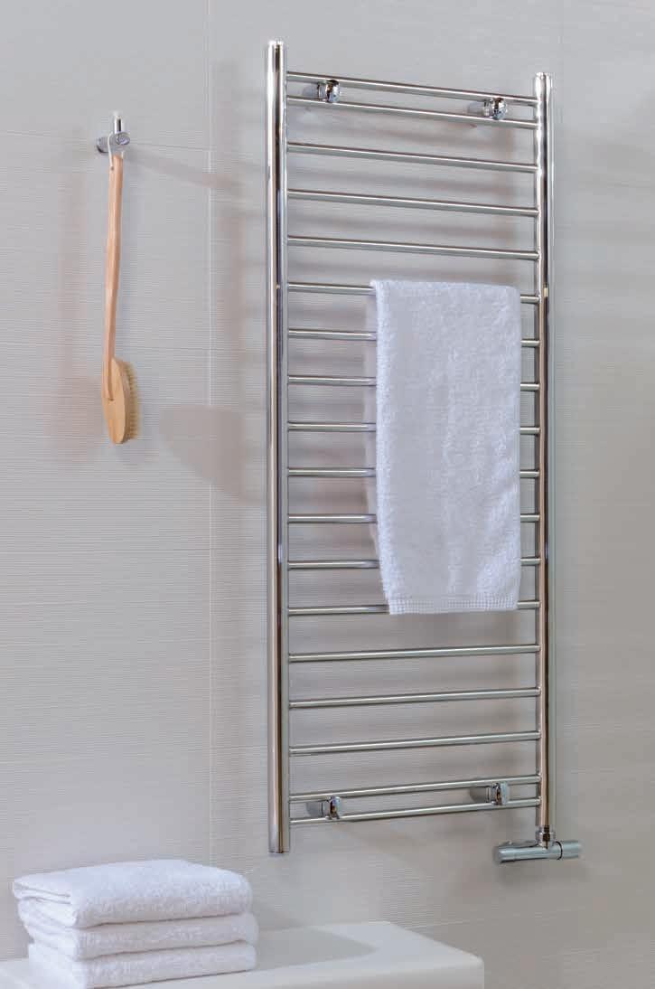 Medidas: Ø 9 cm Al. 43 cm. Acero inoxidable 304 cromado. Incluye soporte a pared.