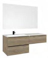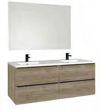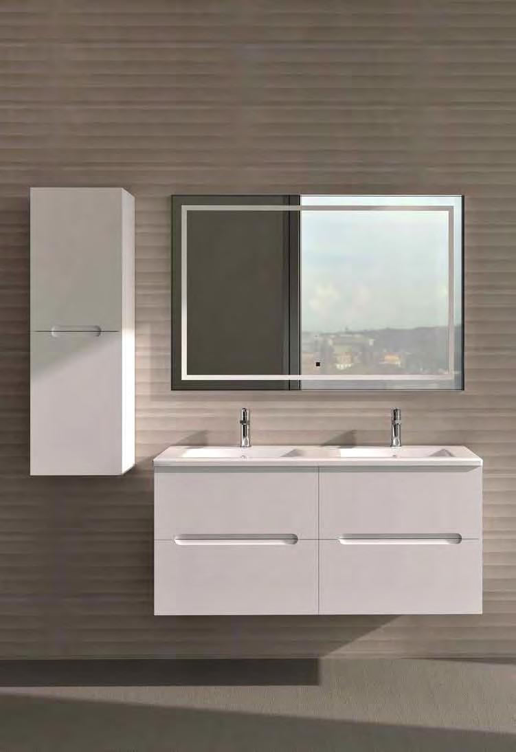 Combinación formada por un mueble DONNA de 120 cm en color frappé. Columna de 124 cm en acabado frappé. Lavabo sobre encimera rectangular ovalado BIANCO V blanco y tapa de mineralsolid en blanco mate. Espejo retroiluminado LYS de 45 x 90 cm. sin IVA 1.496,90 €