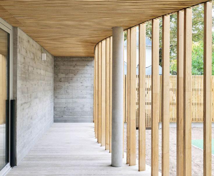 roof structure and detailing, while short circulation routes reduce material use, labour costs, and thermal weak points. A straw-insulated, clay-plastered envelope provides breathable walls, passive thermal regulation, and a tactile, grounding finish throughout.