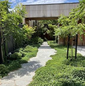 The northern wing houses the garage, laundry, and kitchen/ living areas — designed for practical living with a smooth flow from arrival to unloading groceries directly into the pantry. The kitchen is acoustically buffered from the garage and visually open to both courtyards, offering views to arriving guests and into the main living space.