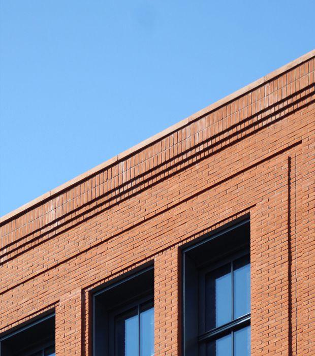 Along Harvey Street, recent renovations and wall jogs are demolished to reclaim valuable interior space. These irregularities are rebuilt using modern construction assemblies that improve functionality, thermal performance, and overall buildability, while tying seamlessly into the restored character of the original brick form.