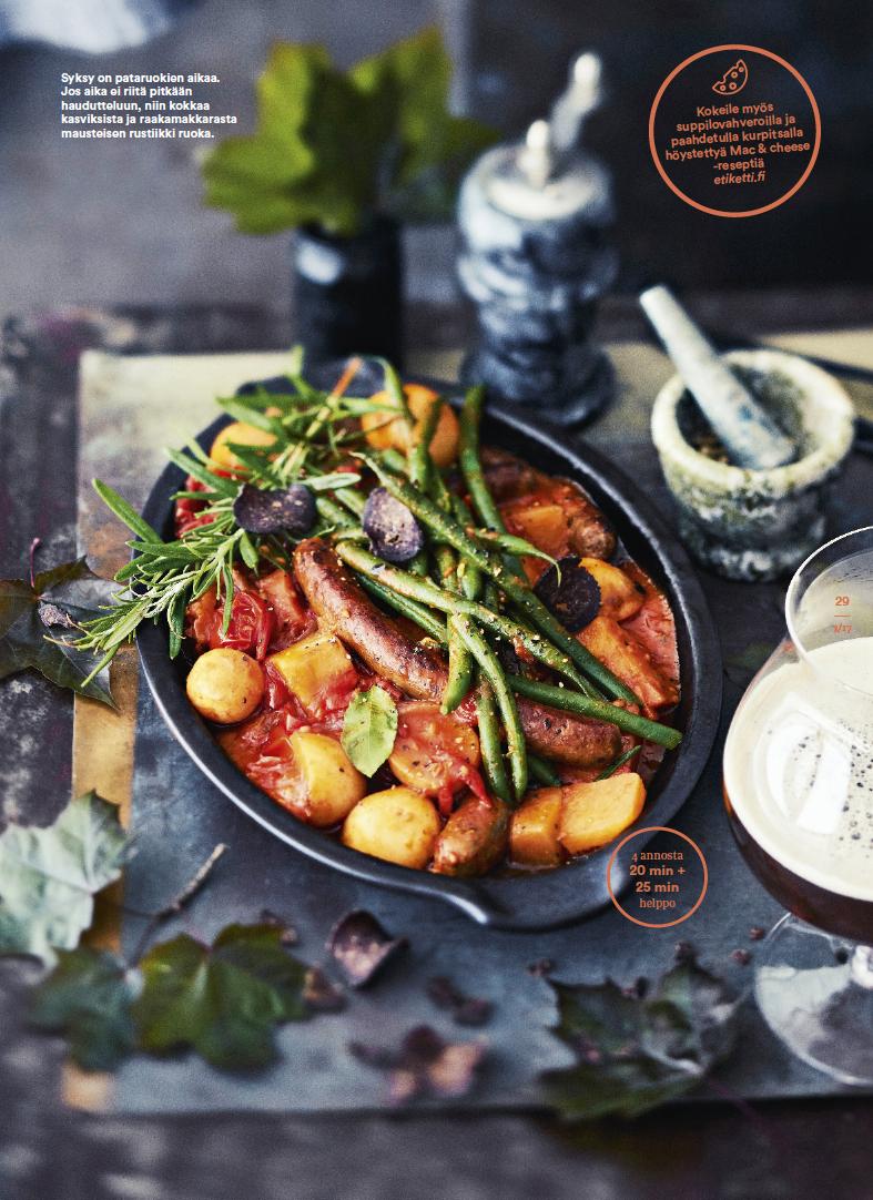 Syksyllänautitaansadonkorjuusta javärikkäistäkasviksista.Reseptit löydätosoitteestaetiketti.