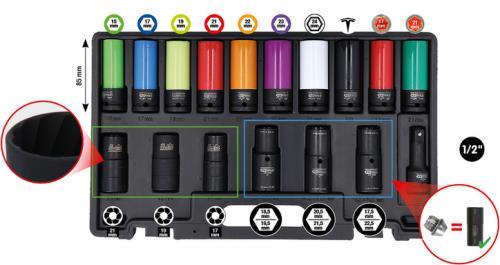1 x 1/2″ alumiinivanteiden voimahylsysarja kestävä, 5-os 1 x 1/2″ tuuman suurtehoinen THE miniDEVIL –paineilmaiskuruuvain, 1 084 Nm