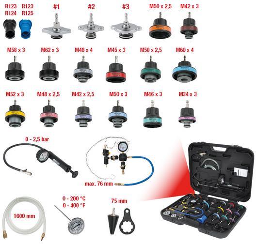 • ihanteellinen valikoima jäähdytysjärjestelmän paineen ja sulkutappien tarkistukseen